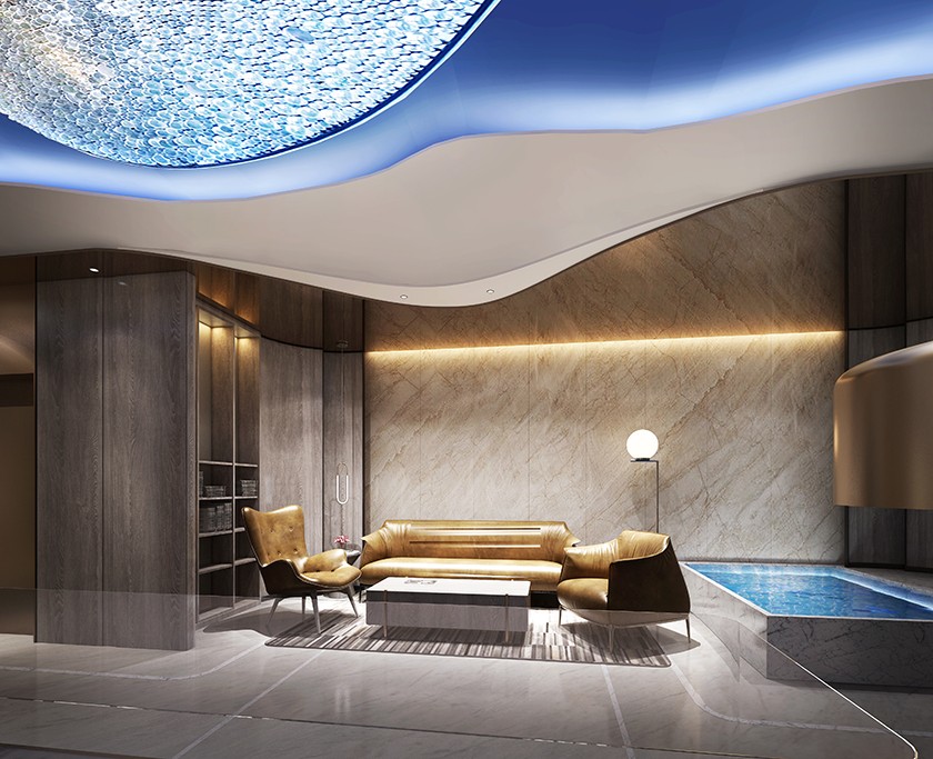 简约风格是阿里云的最突出的主题,酒店的大堂是对外传送信息最为重要的第一印象,在大堂的空间设计上,在顾客步入大堂那一瞬间,色彩就有引导性。轻盈的色彩体现舒适典雅。在大堂的室内设计中,选用了土耳其灰石材、原木与布纹材料相结合,低调中彰显贵气,高雅中追求人文色彩。室内装饰品的点缀让人感觉更为亲近和舒心,整体氛围与设计中“以人为本”的理念相协调。大堂的水晶灯创新精致,就像一串流动的珍珠,更突显了酒店的精致与灵动。